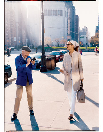 He's the street style photographer for the New York Times, and has been for a lifetime! His pictures are the best documentation of New York life and fashion of the last five decades. And he's still the same guy, living in the same studio in Carnegie Hall, with his bike and his blue coat... So humble and simple! One of those characters who are what they do and are part of something bigger. Kind of like a New York building, I would think.
